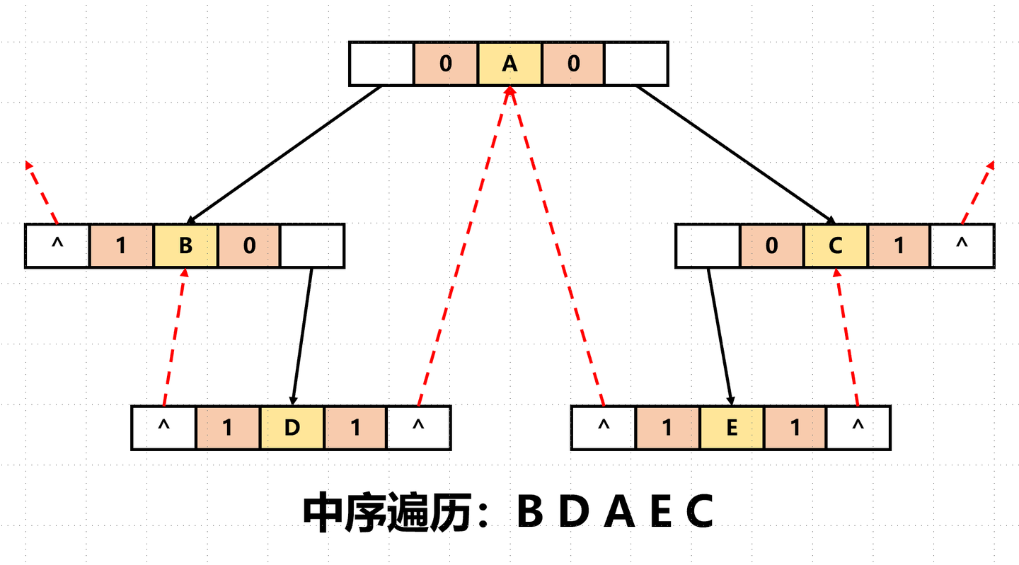- left 指向的是 左子树,也可能是指向 前驱节点